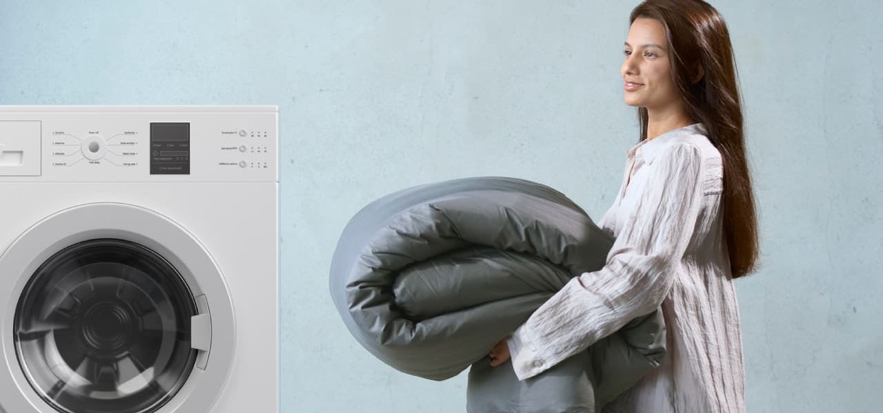 抗菌よりも強い制菌性で、ふとん内部の菌の増殖を抑制し、汗の嫌な臭いも消臭します。抗ウィルス機能で究極の清潔さを保ちます。また、コインランドリーや家庭でも丸ごと洗えるため、布団内部の汚れやダニの心配も不要です。