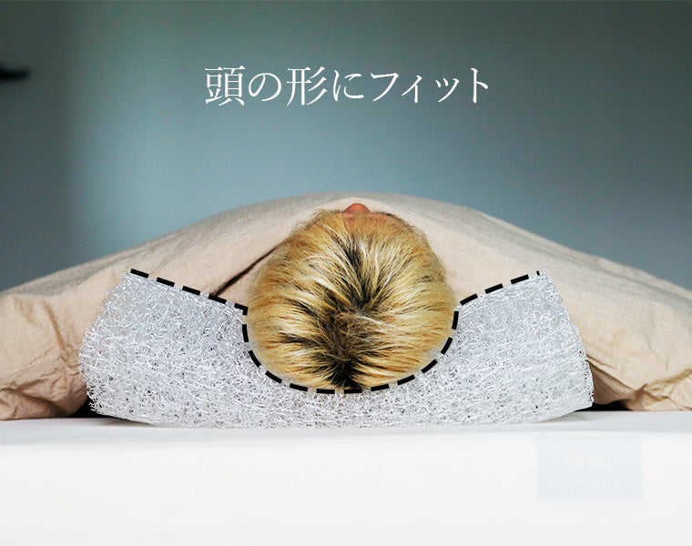 頭を乗せるとぐっと沈み込み無数の繊維が面となって頭を支えます。腰部や首への負担を減らし寝返りもしやすく、就寝中の体にもやさしいのがまた嬉しいポイント。
