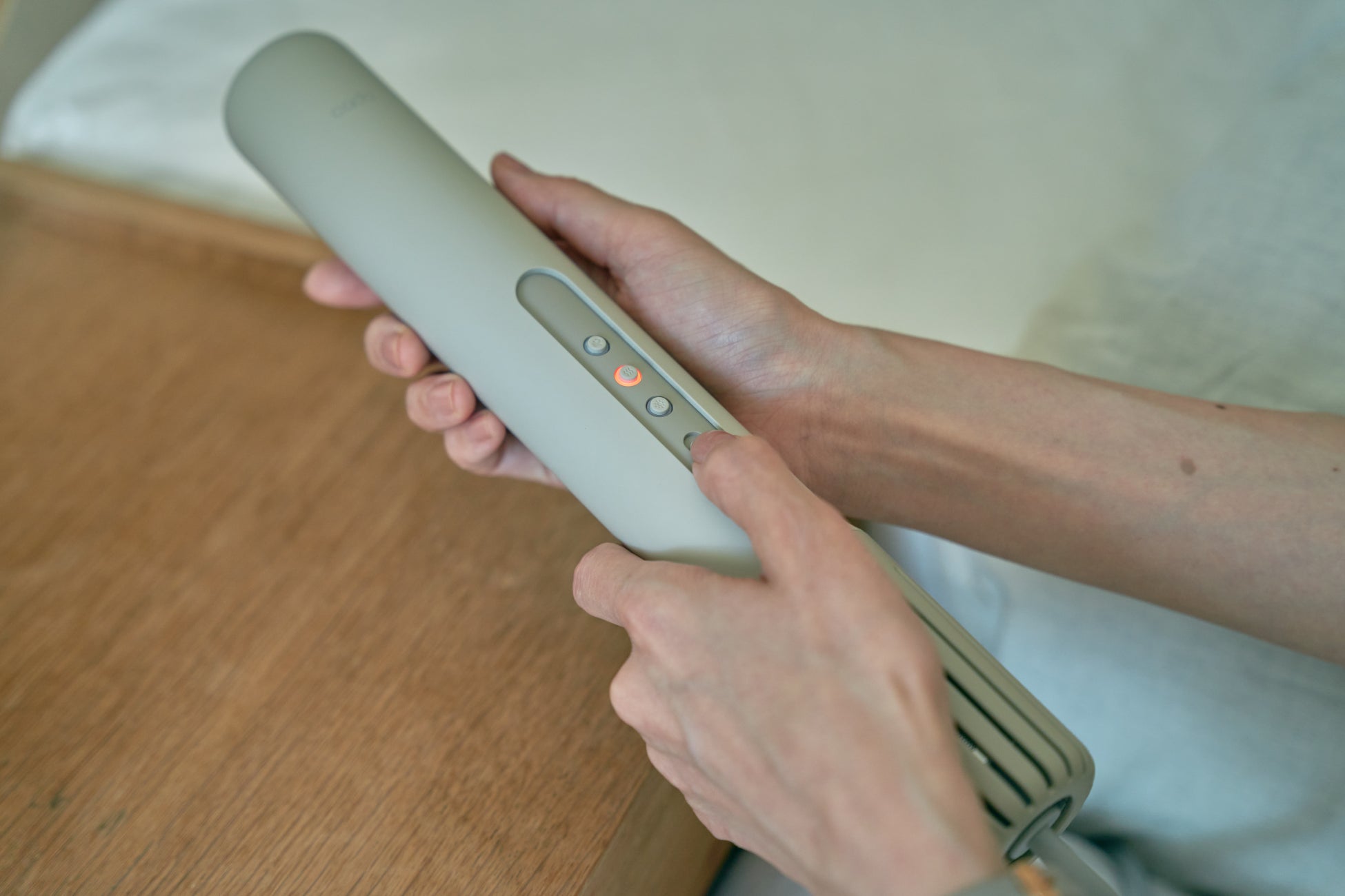 コンパクト&軽量なので、使用も収納も手間知らず。おでかけ前に挿し込んでベッドクリーニングとして、眠る前に挿し込んでナイトルーティンとして。忙しい毎日の中でも習慣化しやすく、365日あなたのライフスタイルに寄り添って快眠をサポートします。温度過昇防止装置搭載で安全性も徹底的に追求。マット塗装に柔らかなウォームグレーカラーは寝室に馴染みやすく、使わないときはベッドサイドに置いていてもインテリアの邪魔をしません。