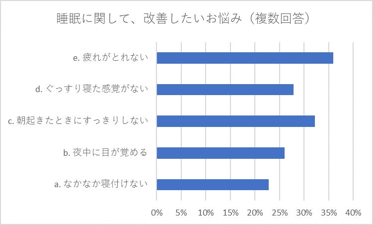 なかでも、「疲れがとれない」「朝起きた時にすっきりしない」お悩みを抱える人はそれぞれ3割以上いました。