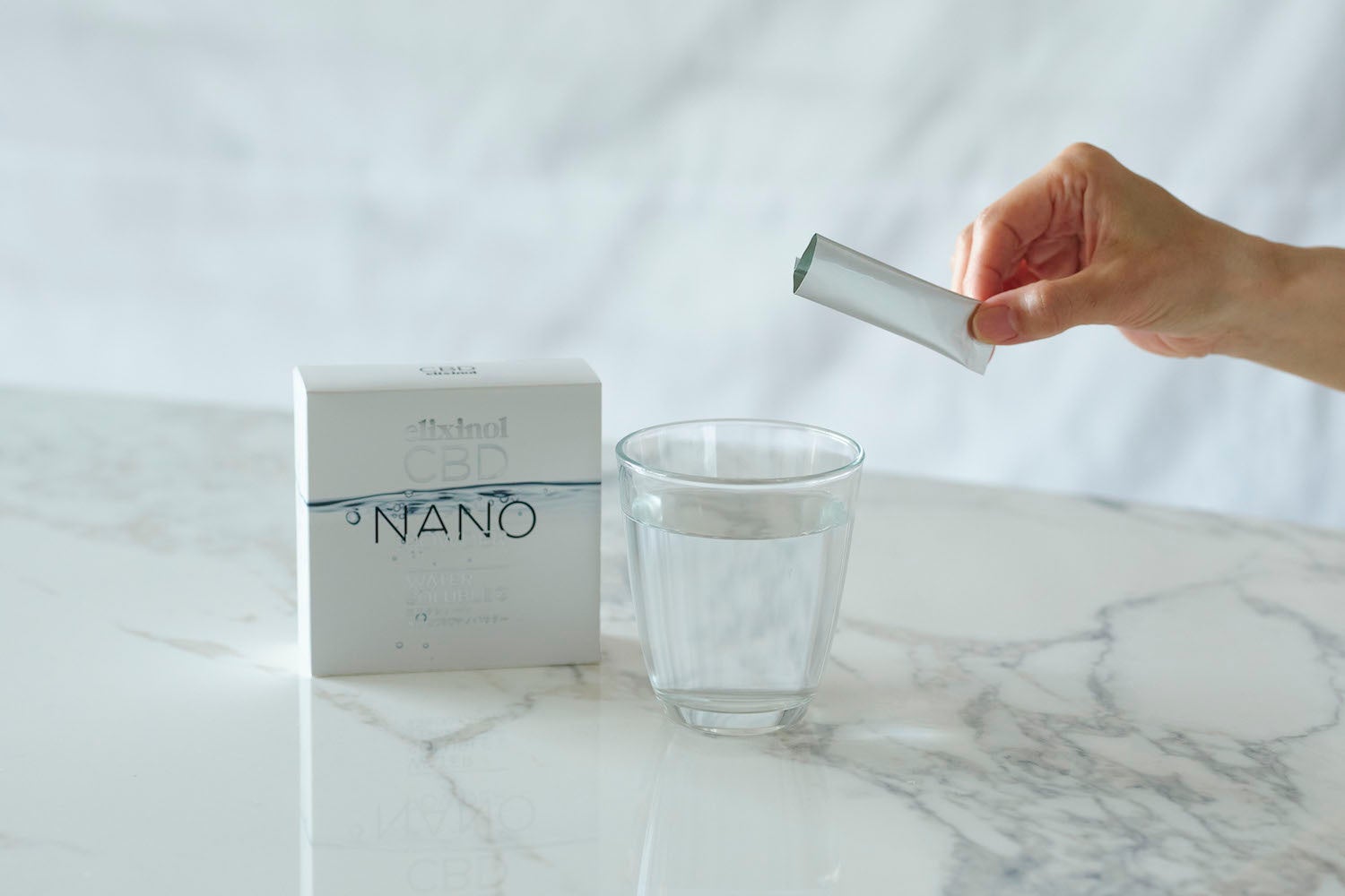 本来、CBDは脂溶性の栄養成分のため、水には溶けません。そのため、食用オイル(MCTやヘンプシードオイル)をベースにした製品が一般的です。CBDナノパウダーは、吸収効率を意識して開発。サッと水に溶けるので、ライフスタイルに併せて、いつでもすぐにCBDを補給することができます。
