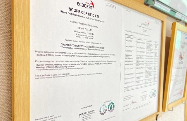 2005年、二次製品では世界初となるオーガニックテキスタイル国際認証を取得。オーガニックコットンを主として地球環境や人の体に与えるダメージを極力抑えた、世界で認められた現状ではこれ以上ないというほど安全で安心なテキスタイル製品の開発とご提供に力を注いでおります。