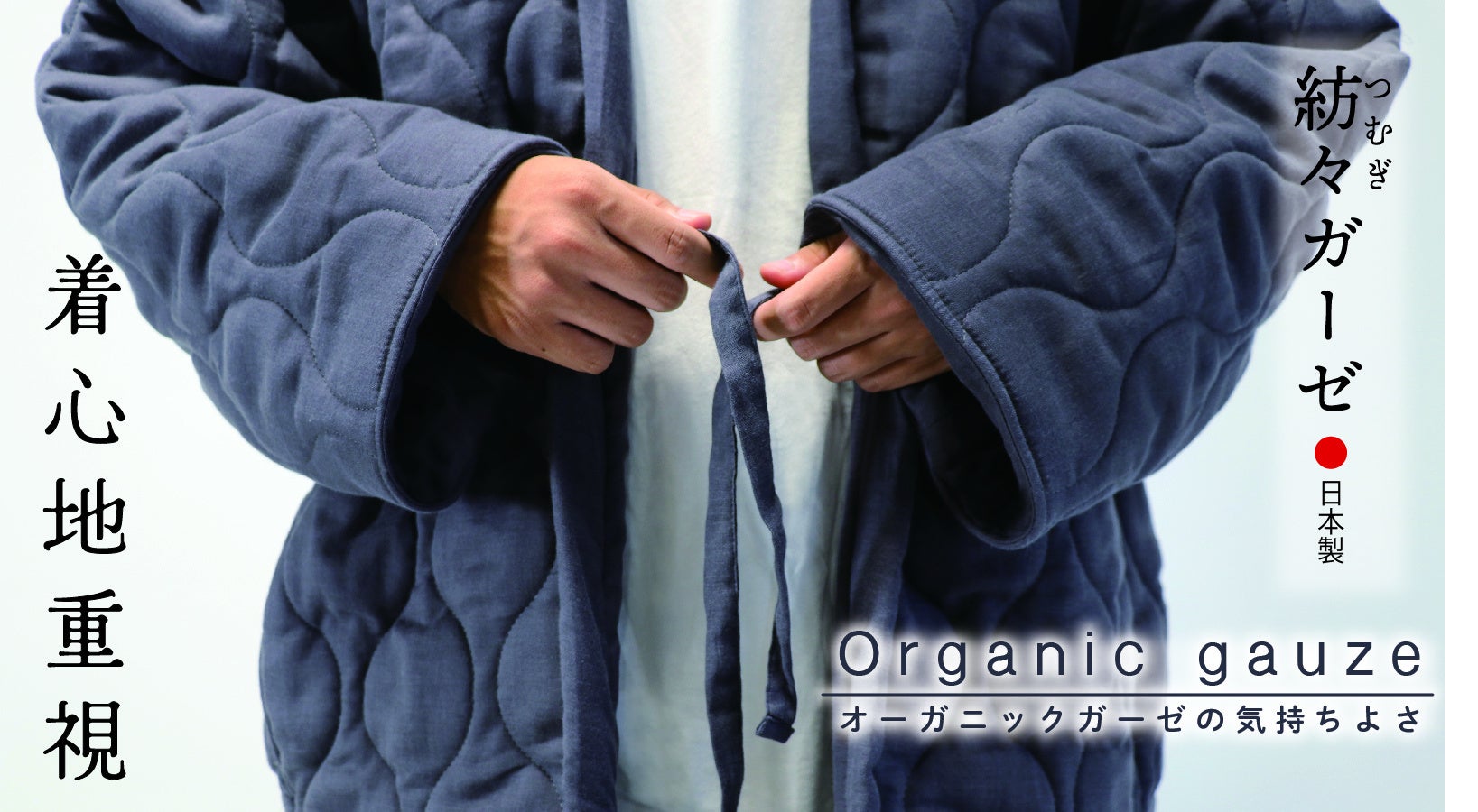 何よりも「安全・安心」な製品づくりにこだわり、オーガニック繊維製品を自社で企画・製造・販売している株式会社ハート(高知県高知市 代表取締役 山岡弘章)は、柔らかな肌ざわりが特徴のオーガニックコットン100%のガーゼ生地と、保温性の高い発熱素材のわたを使用した、「紡々(つむぎ)ガーゼの半纏(はんてん)ジャケット」を10月8日(日)より、応援購入サービス「Makuake」にて先行発売いたします。