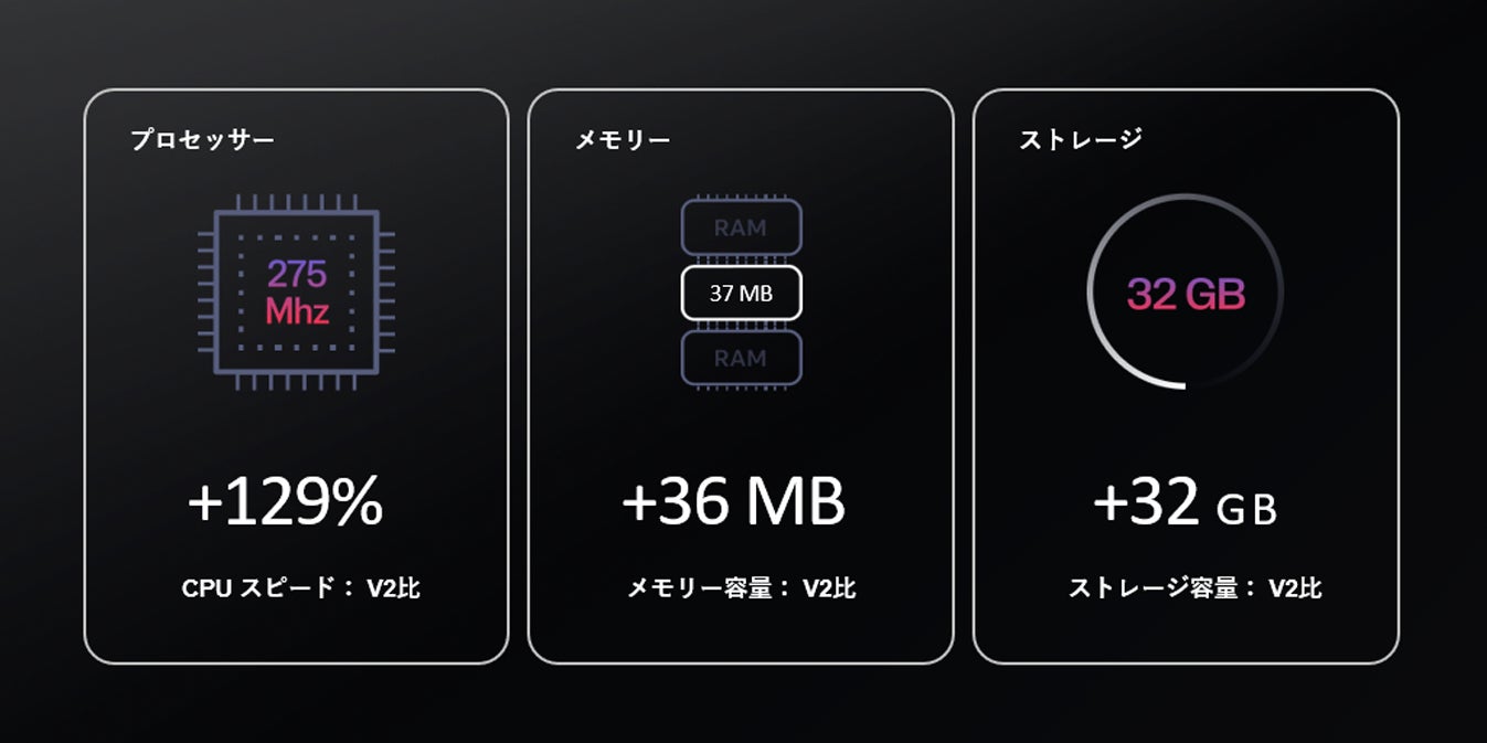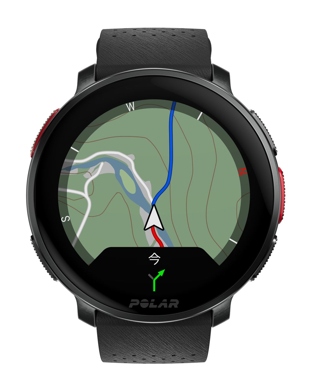 Vantage V3は、運動時もストレスフリーな操作感を実現しました。CPUやメモリ性能がV2に比べ格段に向上し、V2 比較 約+129% 高速な275MHz のCPU 速度、約+36MB拡張した37MBのメモリ容量、0.64MBから大きく拡大した32GB 内部ストレージにより、驚くほどスムーズなパフォーマンスを実現します。 またデュアルバンドGPS により、建物や悪天候からの干渉が少なくなり、より正確に位置や距離を測定します。さらに高解像度で明るく鮮明な有機ELディスプレイを搭載し、ポラール史上最大のディスプレイ画面表示サイズとなっており、屋外でも見やすく快適になっています。バッテリーも更なるロングバッテリーと高速充電を可能にしました。運動時には高精細記録で最大61時間/省電力モードで最大 140 時間、時計表示では最大35日間となっています。また充電ケーブルがUSB-Cケーブルへアップデートされ、高速充電を可能にしています。Vantage V3は既存製品の機能もすべて完備しており、多機能高精度を実現したフラッグシップモデルとなっています。