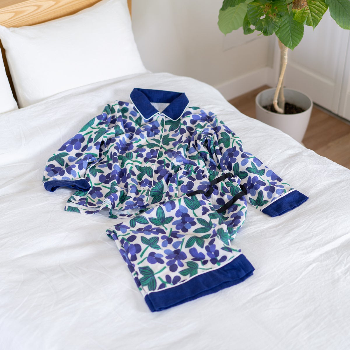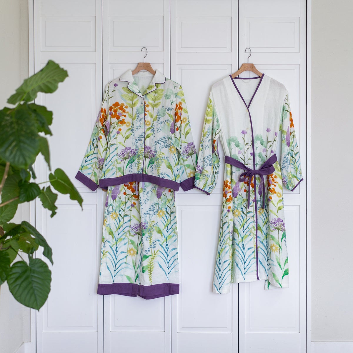 (左)UCHINO relaxボタニカルパジャマ 35,200円/レディス:M・L