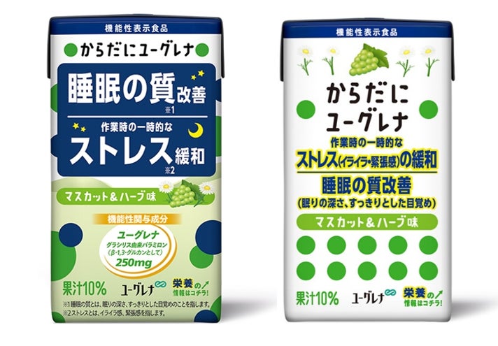 キャンペーン期間中は、「睡眠の質改善※1」、「作業時の一時的なストレス緩和※2」をサポートし、石垣島ユーグレナを10億個(約1,000mg)配合した機能性表示食品「からだにユーグレナ マスカット&ハーブ味」が、2023年9月のリニューアル品と旧品で飲み比べいただけます。通常なら廃棄されてしまう旧品を、楽しく美味しくお得にお試しいただける、「人と地球を健康にする」キャンペーンです。