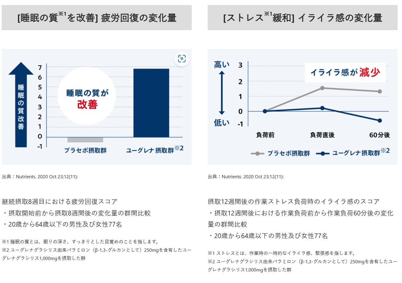睡眠の質・ストレスにWで働く!からだにユーグレナ初の機能性表示食品。