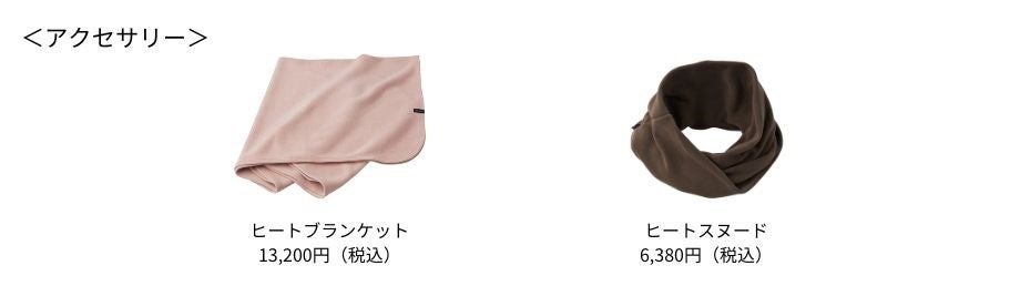 アクセサリー: ヒートブランケット 13,200円(税込)、ヒートスヌード 6,380円(税込)