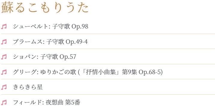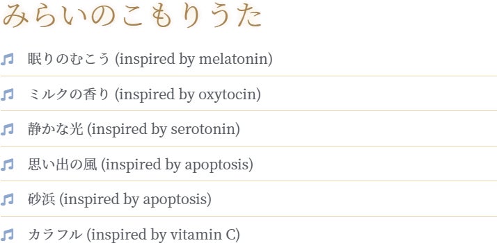 40年以上の音楽・音響ノウハウを集約し、こもりうたのためだけの技術を開発、全曲に適用しました。