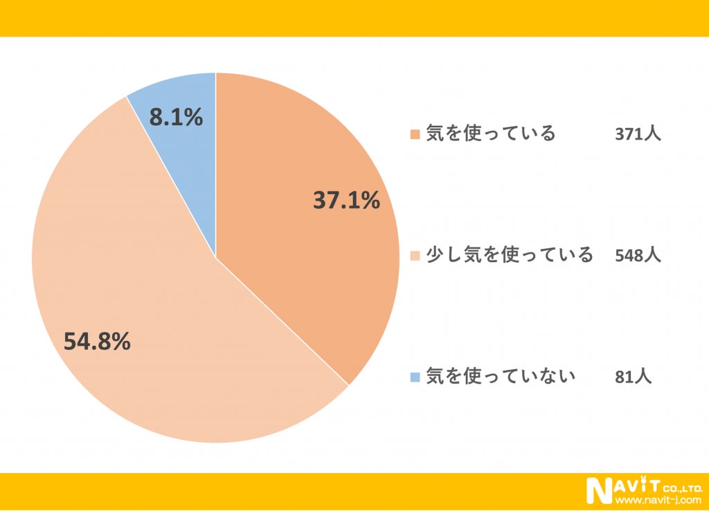 健康に「気を使っている」という方が37.1%で「少し気を使っている」という方が54.8%という結果になりました。全体の90%以上の方が健康に気を使っています。
