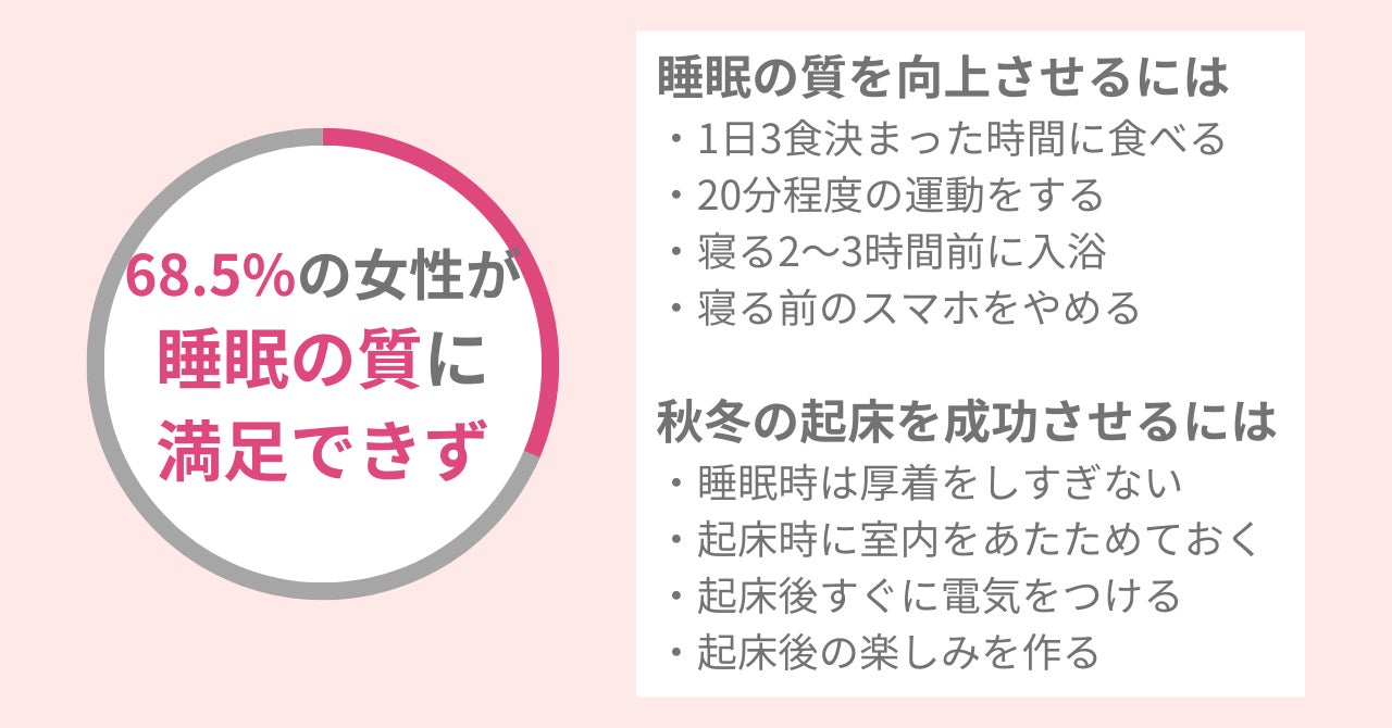 ・68.5%の女性が自身の睡眠の質に満足できず