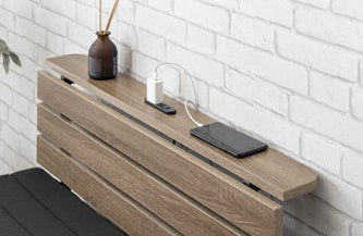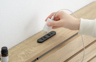 ヘッドボードには2口のコンセントが付いているため、スマートフォンやタブレット、照明や卓上加湿器などベッド周りで充電や給電が必要なシーンにとても便利です。使用していないときのほこりや湿気の侵入を防ぐスライド式になっているため、安心してご使用いただくことができます。