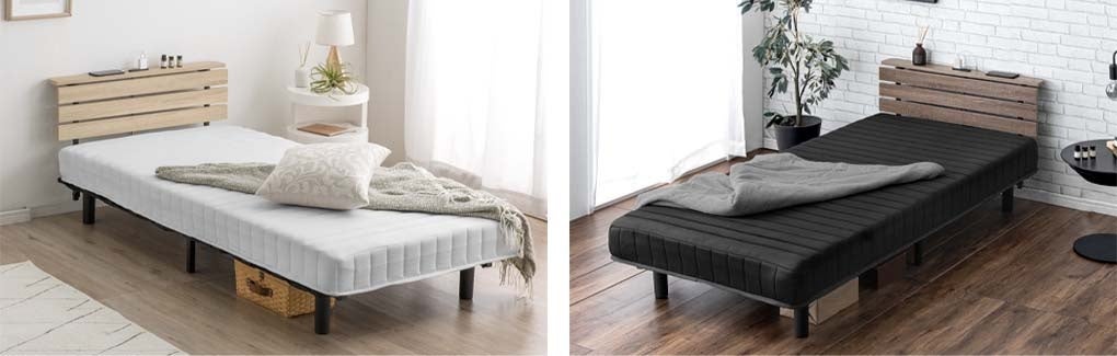 一般的な脚付きマットレスはマットレスと脚のみの構造になっていることが多いため、シンプルではあるものの飾り気の少ないデザインのものが多くありました。本製品のヘッドボードは木目調デザインとなっており、これまでの脚付きマットレスと比べデザイン性にも優れているためお部屋のコーディネートを楽しむこともできます。