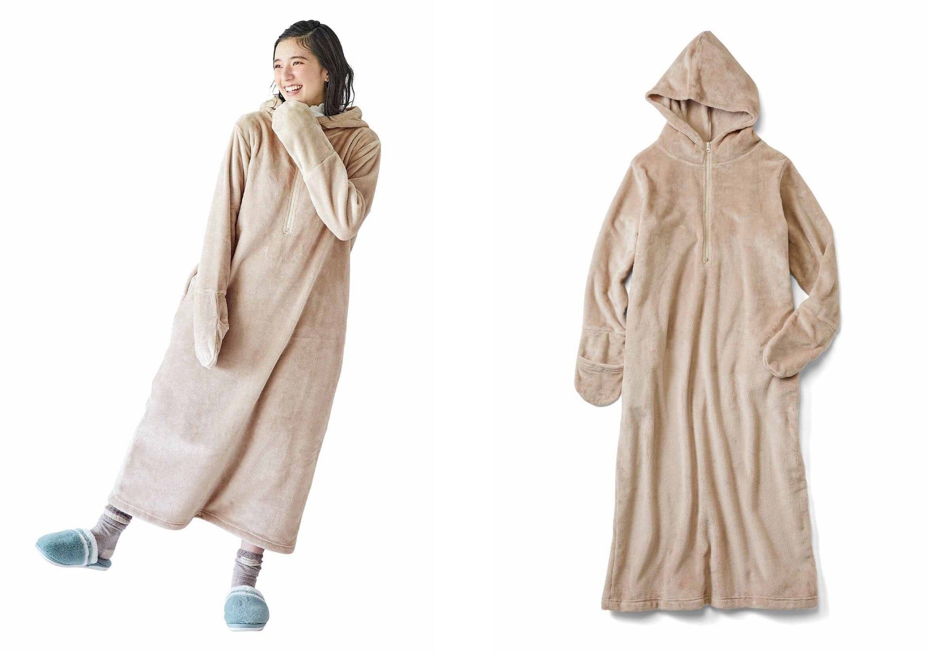 【NEW】リブ イン コンフォート おうちの節電対策にもぴったり 全身包まれる両面起毛ワンピース〈ベージュ〉
