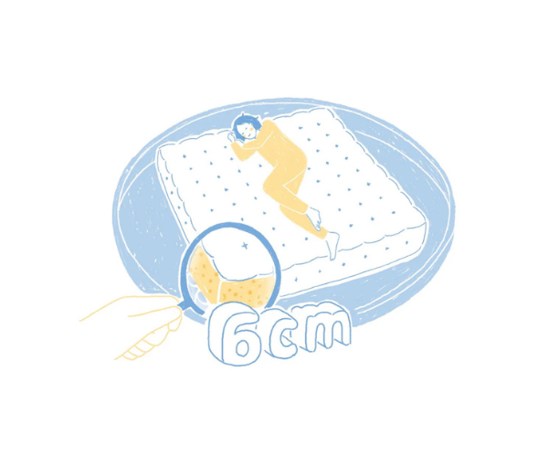 一般的なマットレスでは2cmほどのフォームを採用することが多い中、スリーピーとうふでは6cmもの厚みを確保しています。